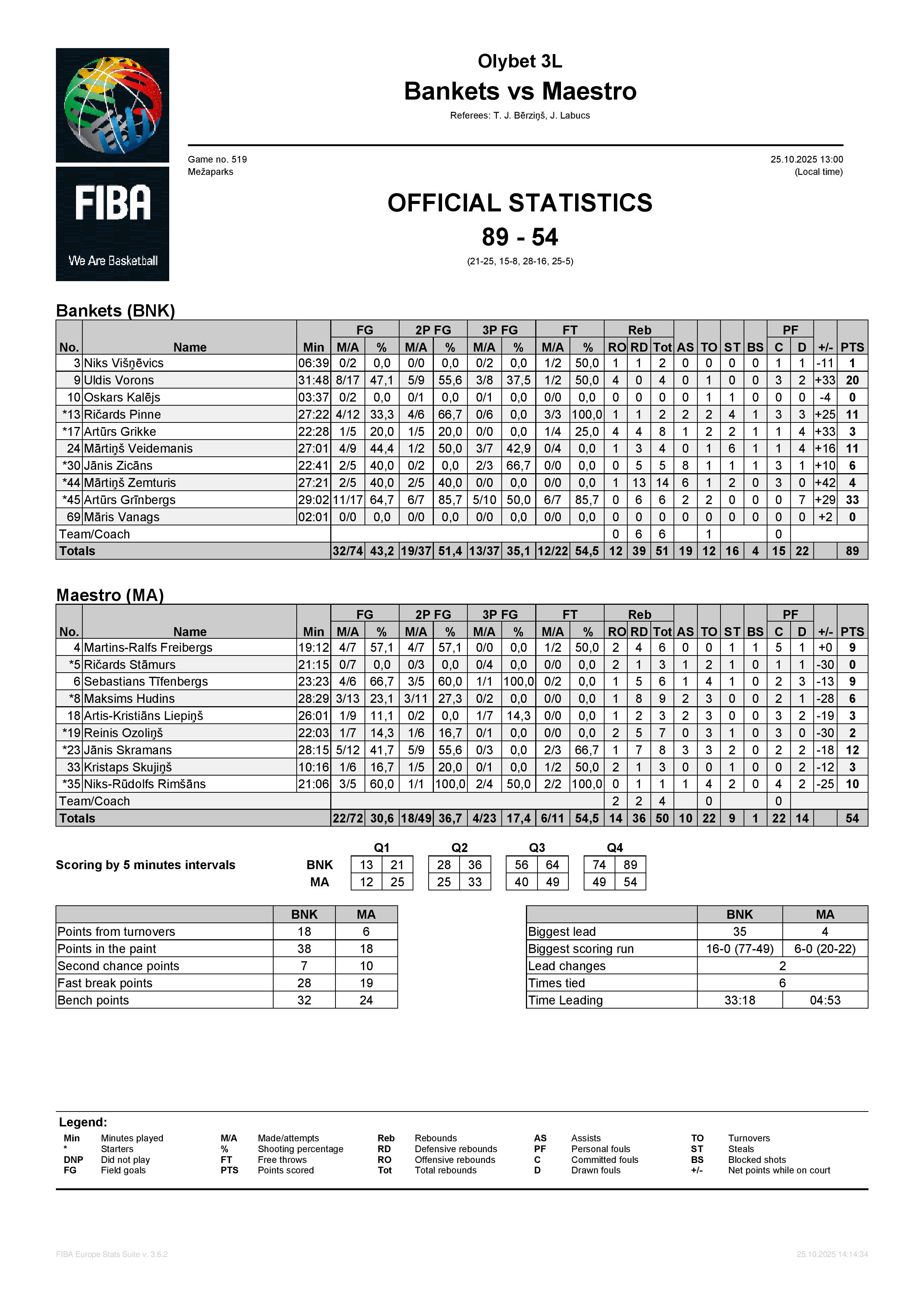Komanda 3341 BK LVBET SCORES 69