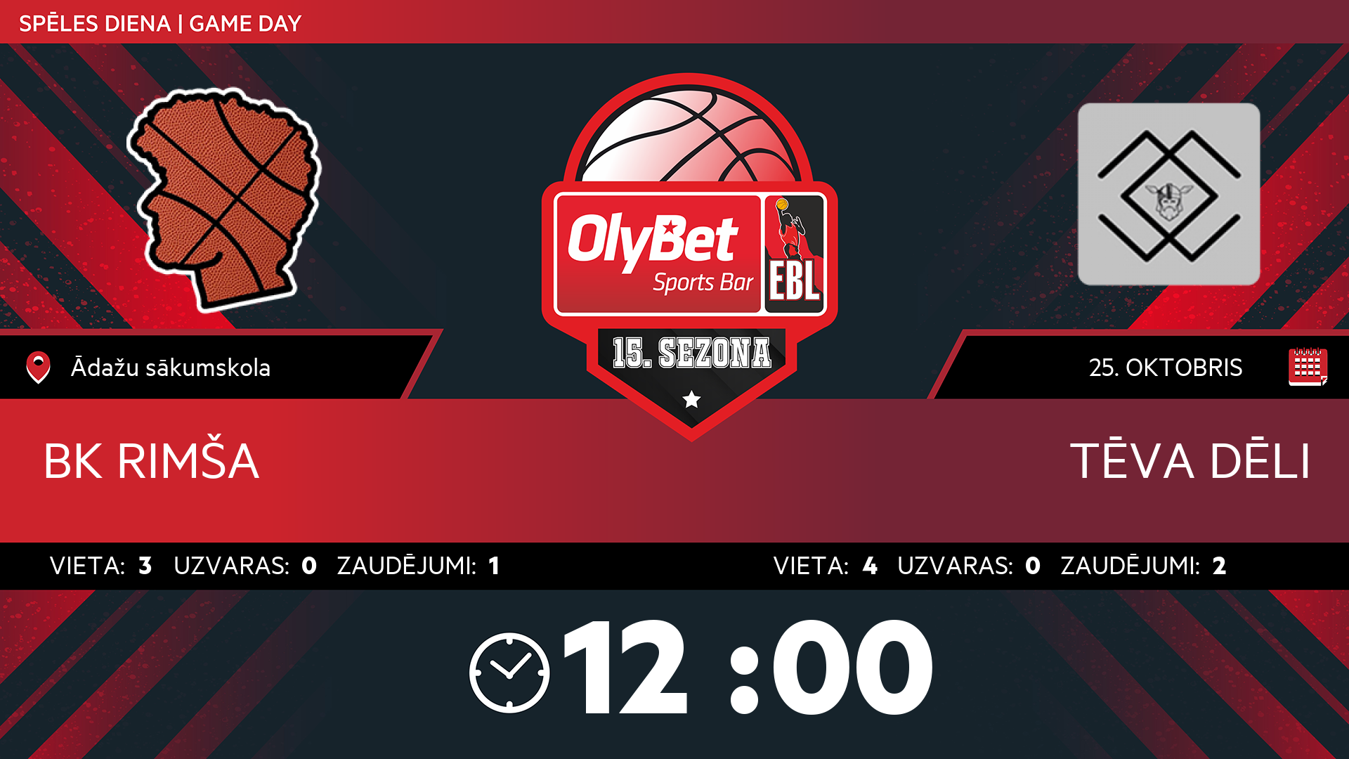 sestdiena: 12:00