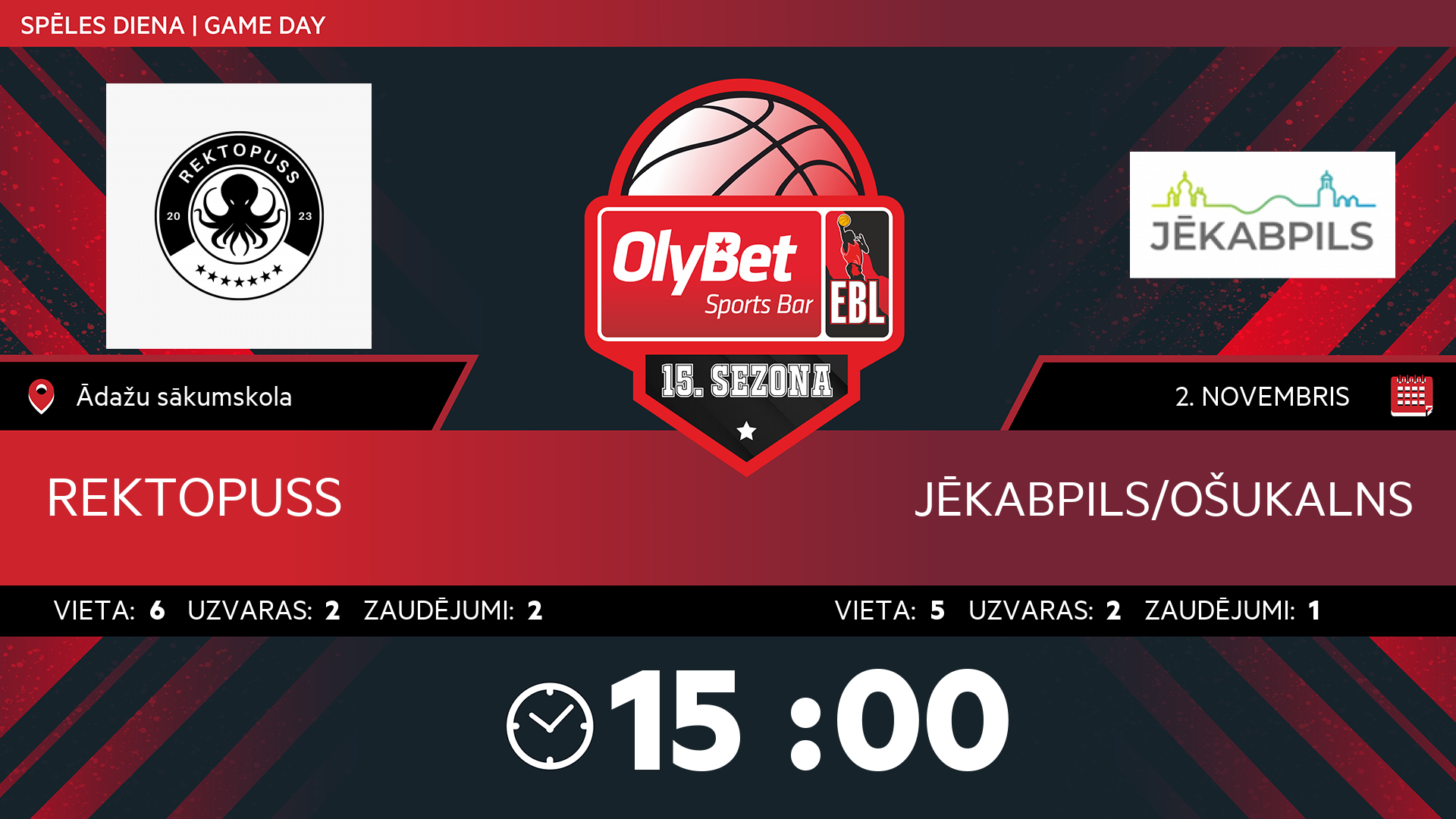 • svētdiena: 15:00