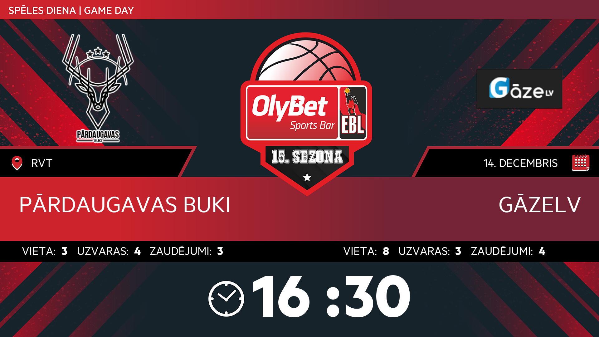 sestdiena: 16:30