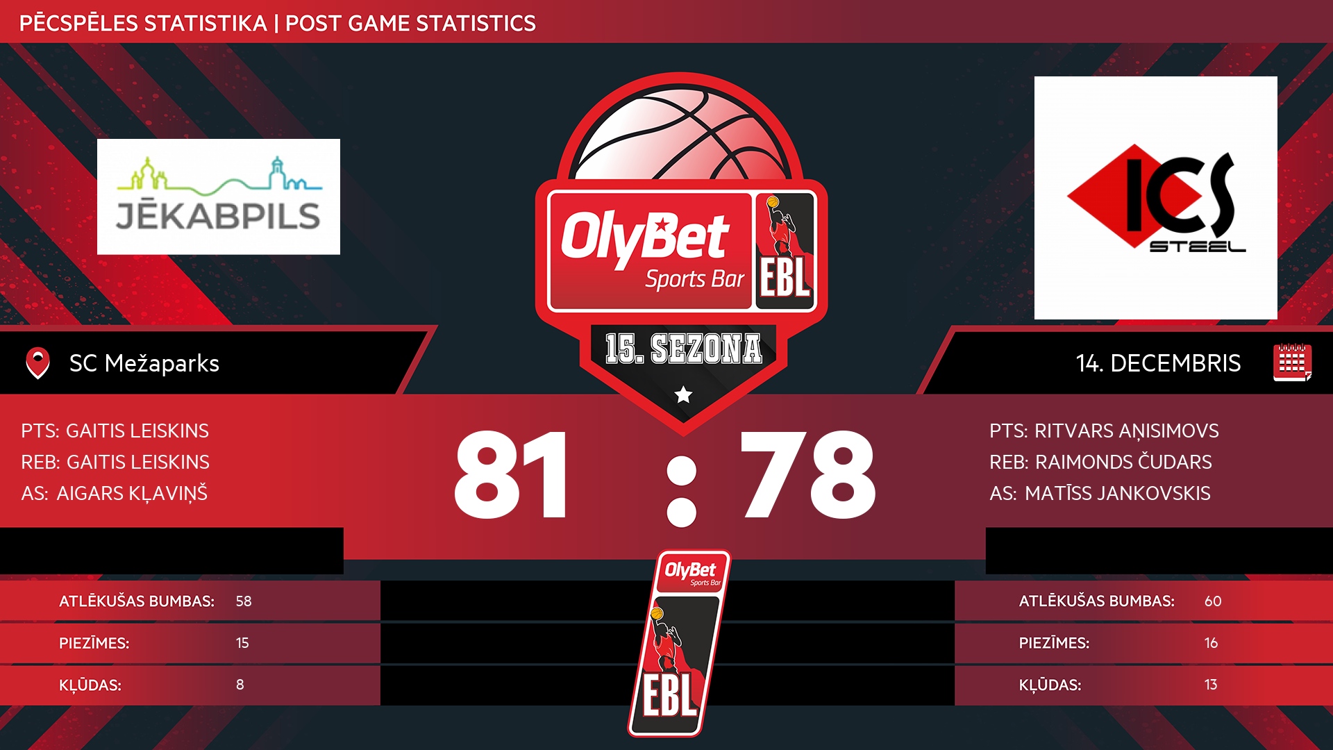 • sestdiena: 14:30