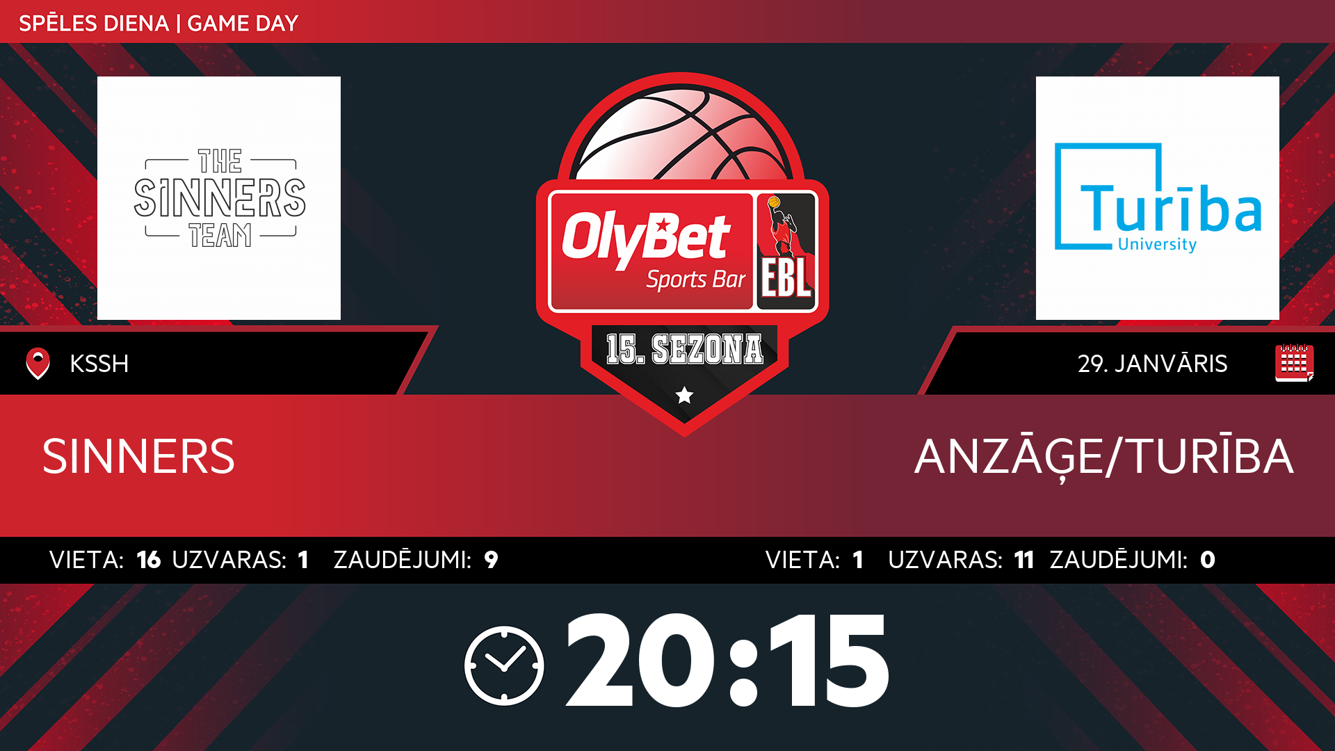 • ceturtdiena: 20:15