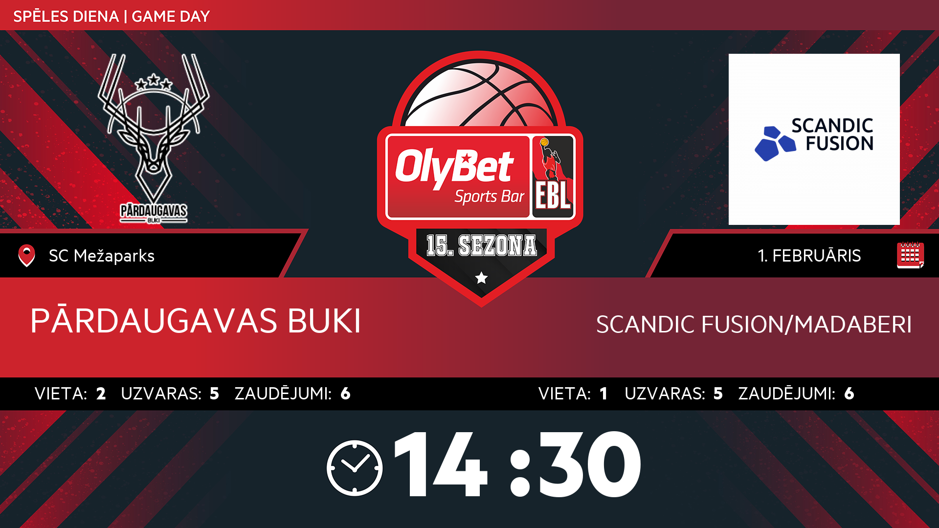• sestdiena: 14:30