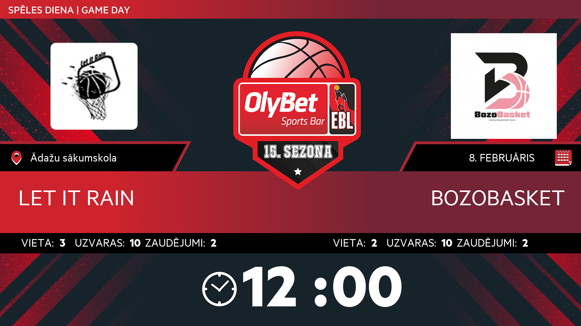 svētdiena: 12:00