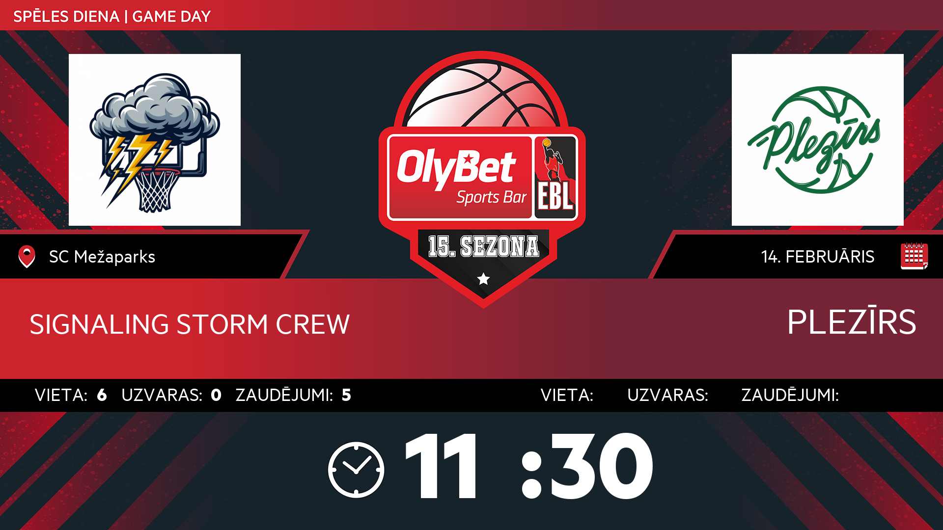 • sestdiena: 14:30