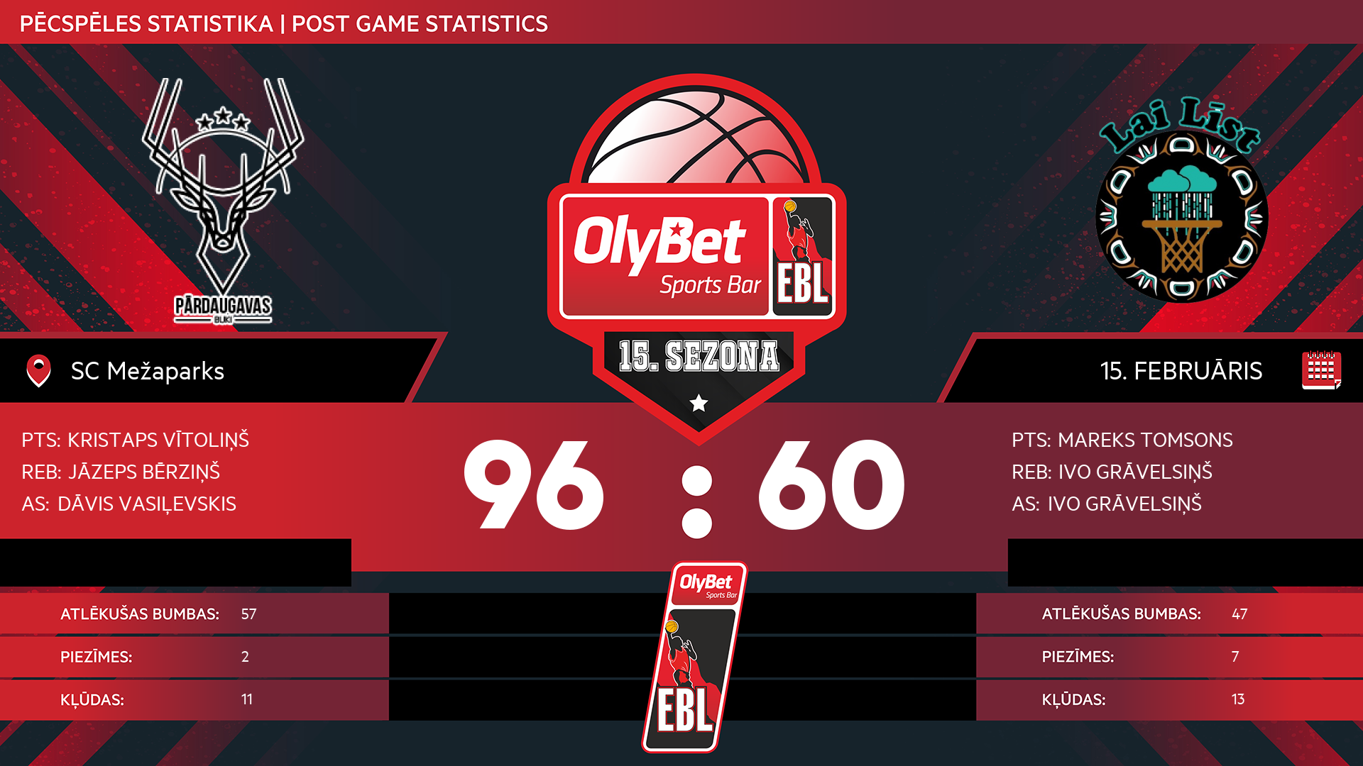 sestdiena: 15:00