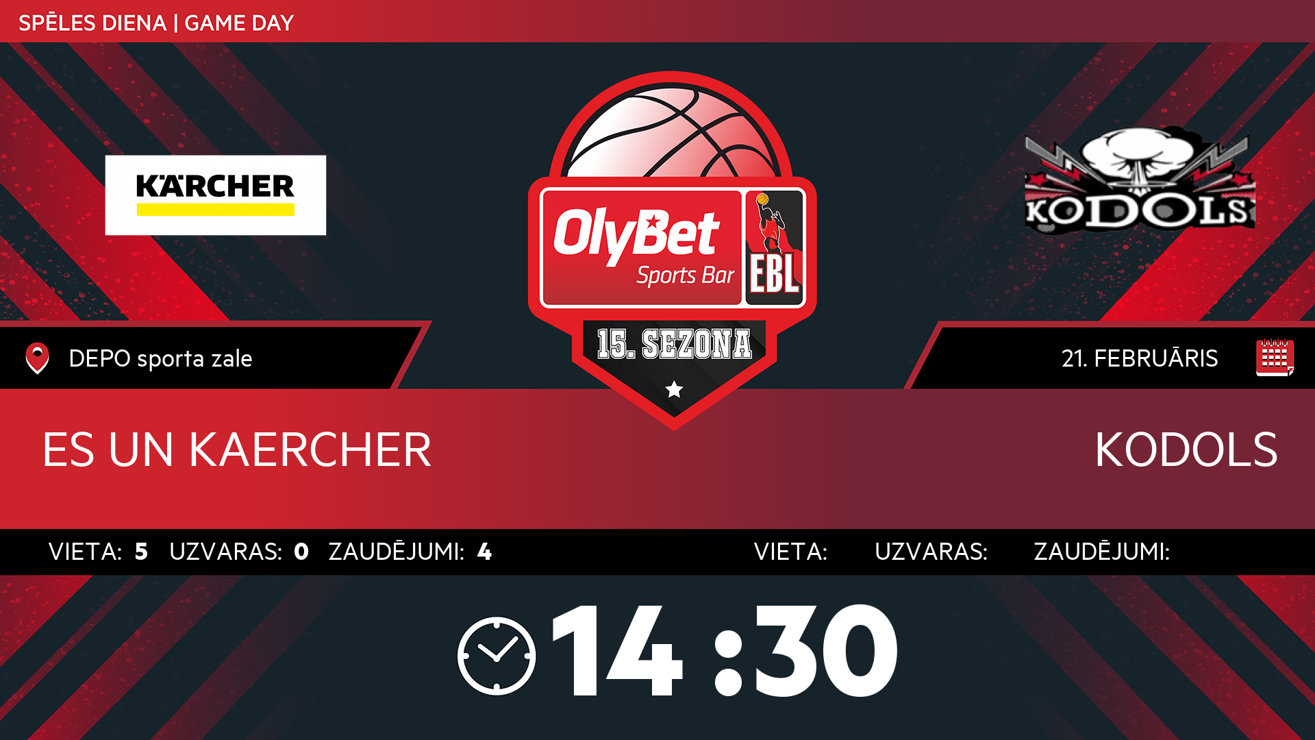 • sestdiena: 14:30