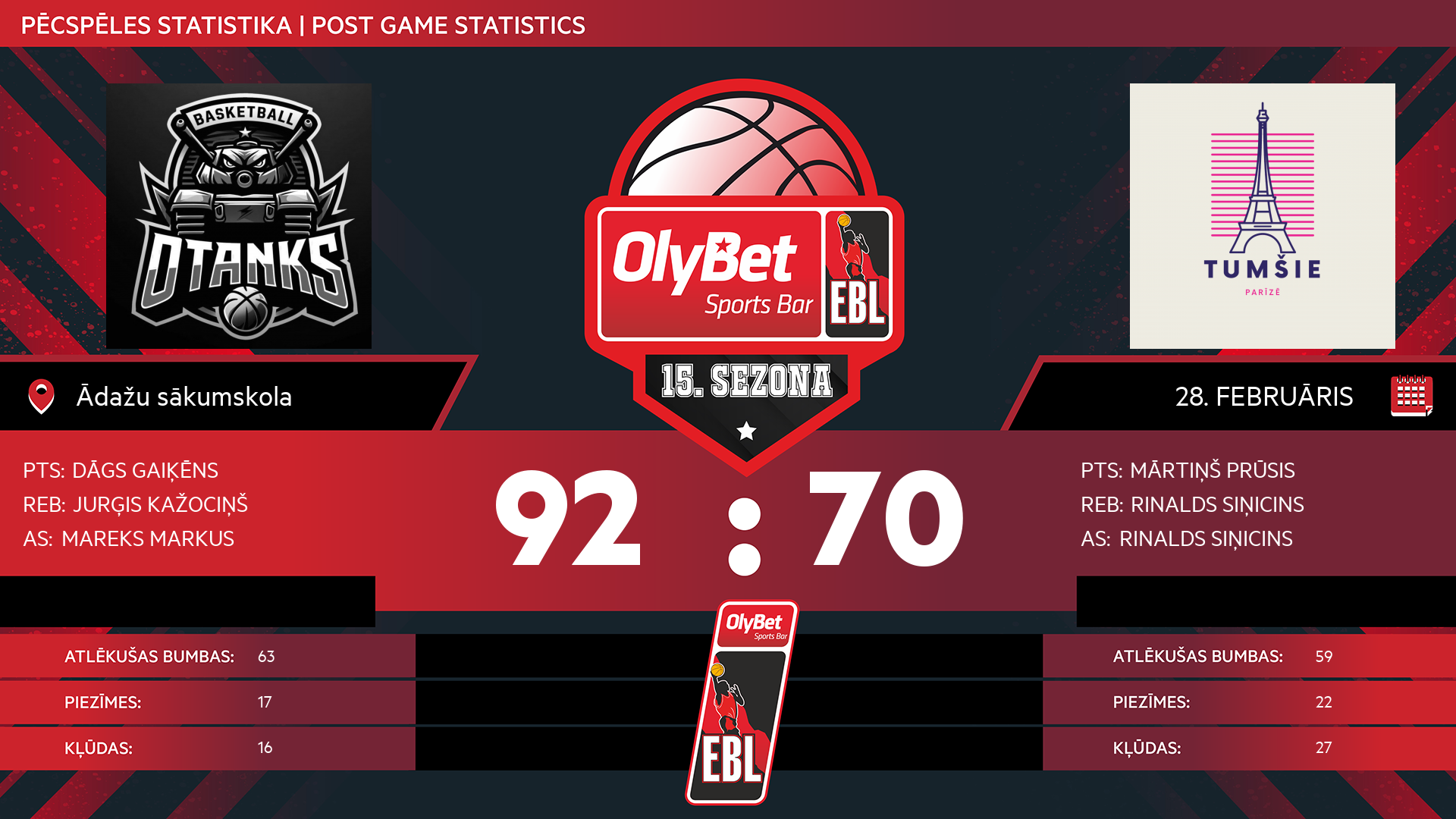 Komanda 3341 BK LVBET SCORES 80