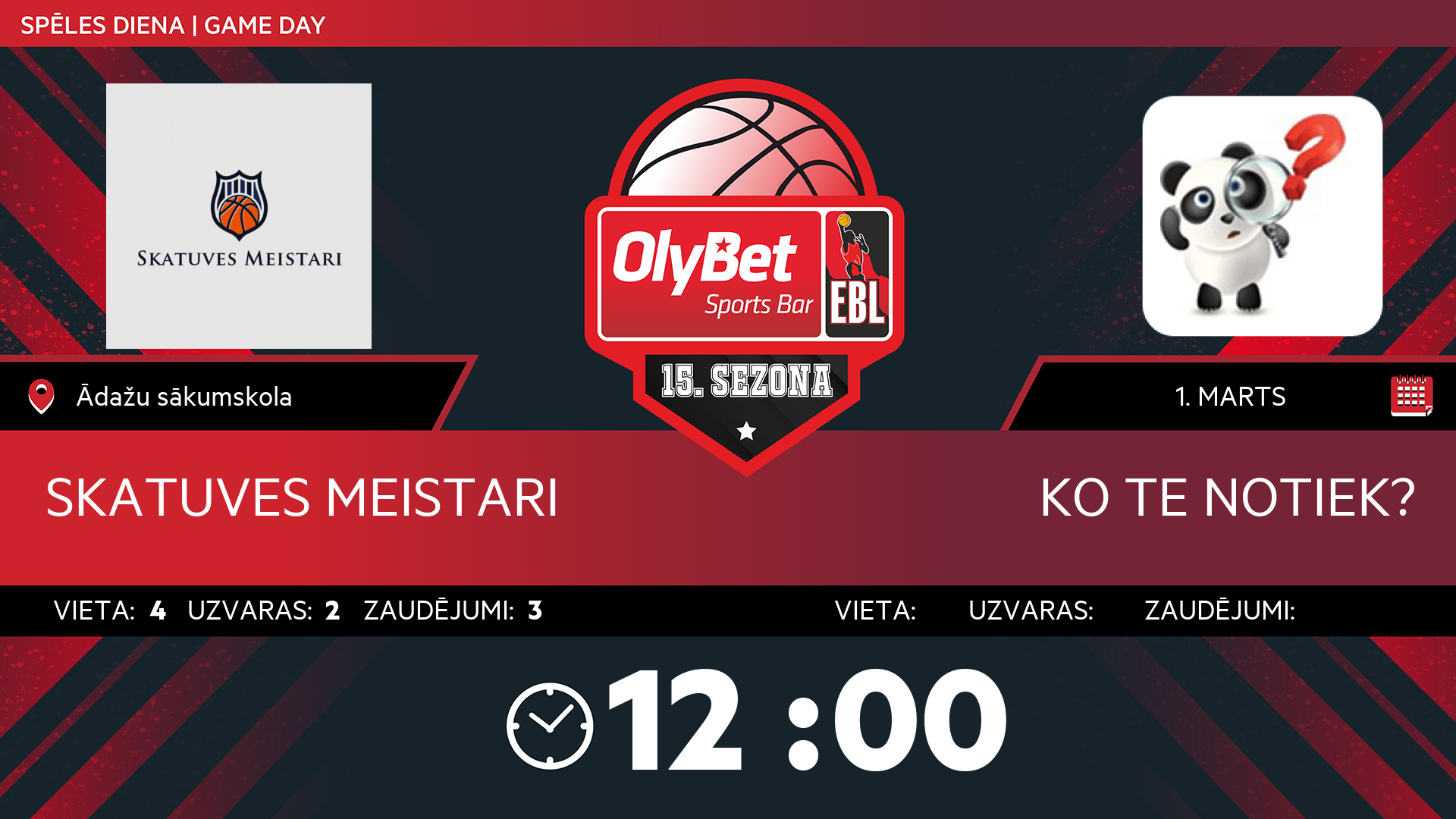 • sestdiena: 12:00