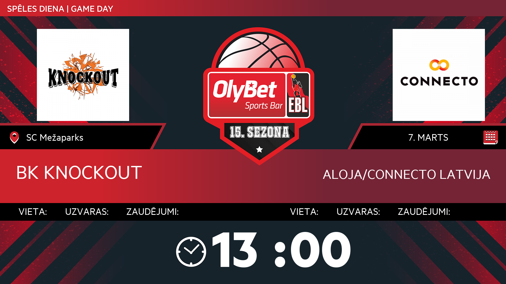 sestdiena: 13:00