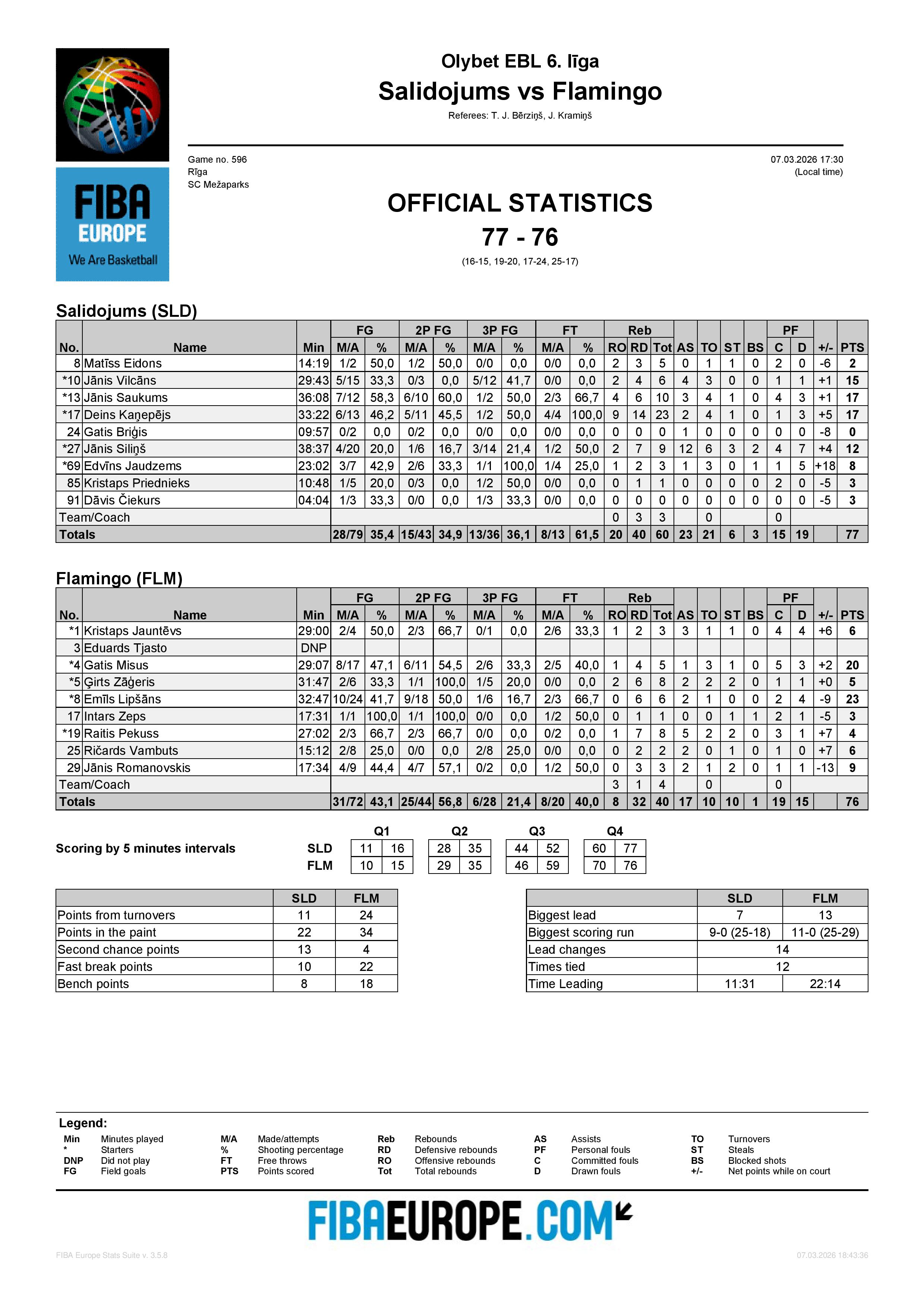 Komanda 3341 BK LVBET SCORES 71