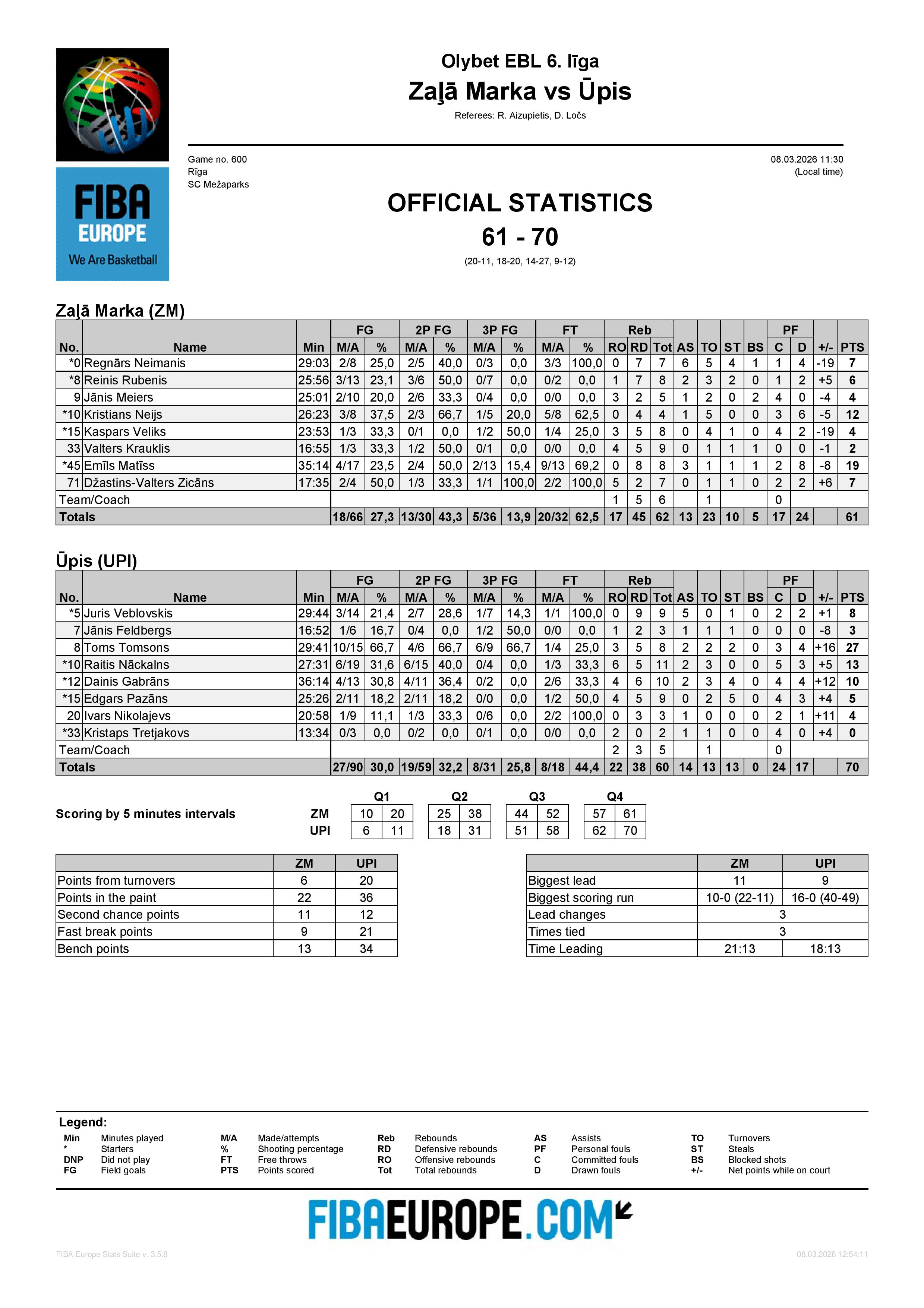Komanda 3341 BK LVBET SCORES 86