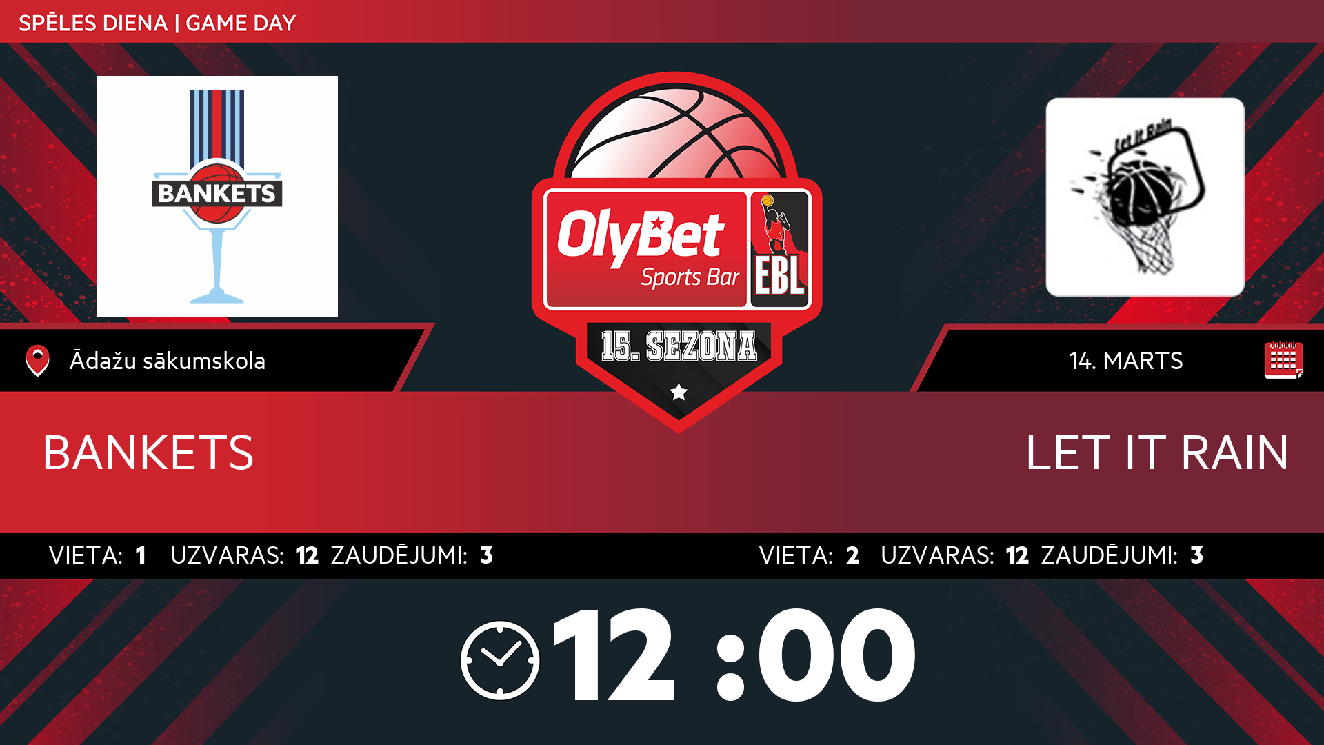 sestdiena: 12:00
