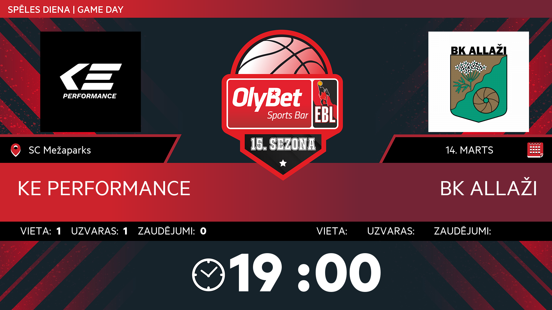 • sestdiena: 19:00