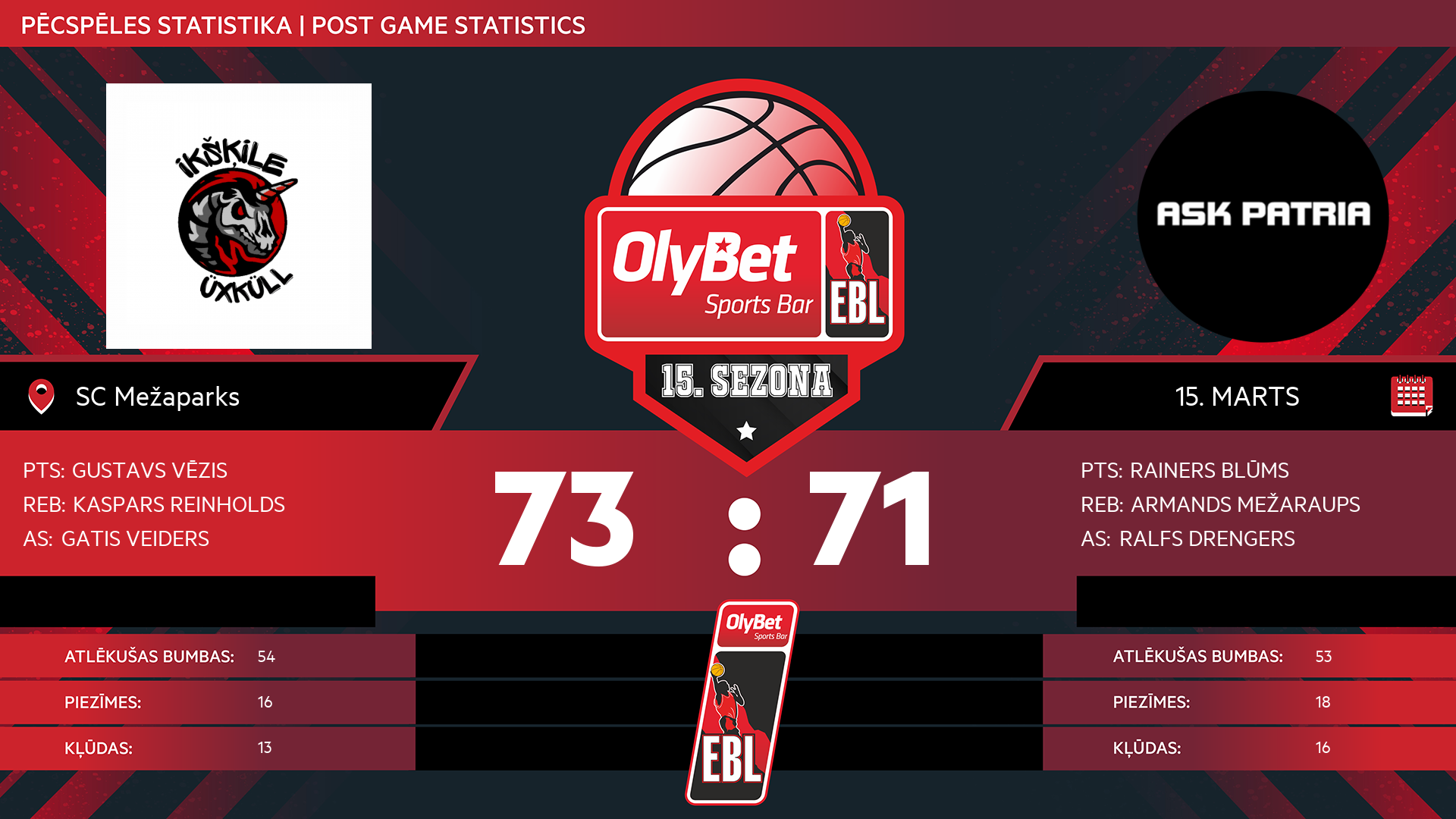 sestdiena: 15:00