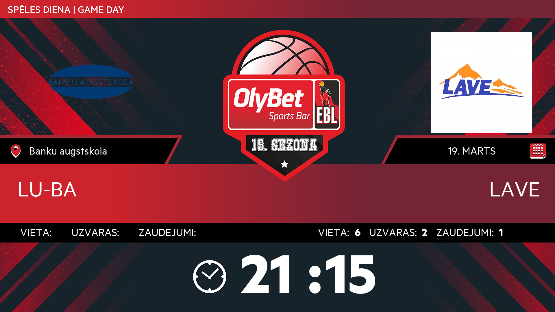 • ceturtdiena: 21:15