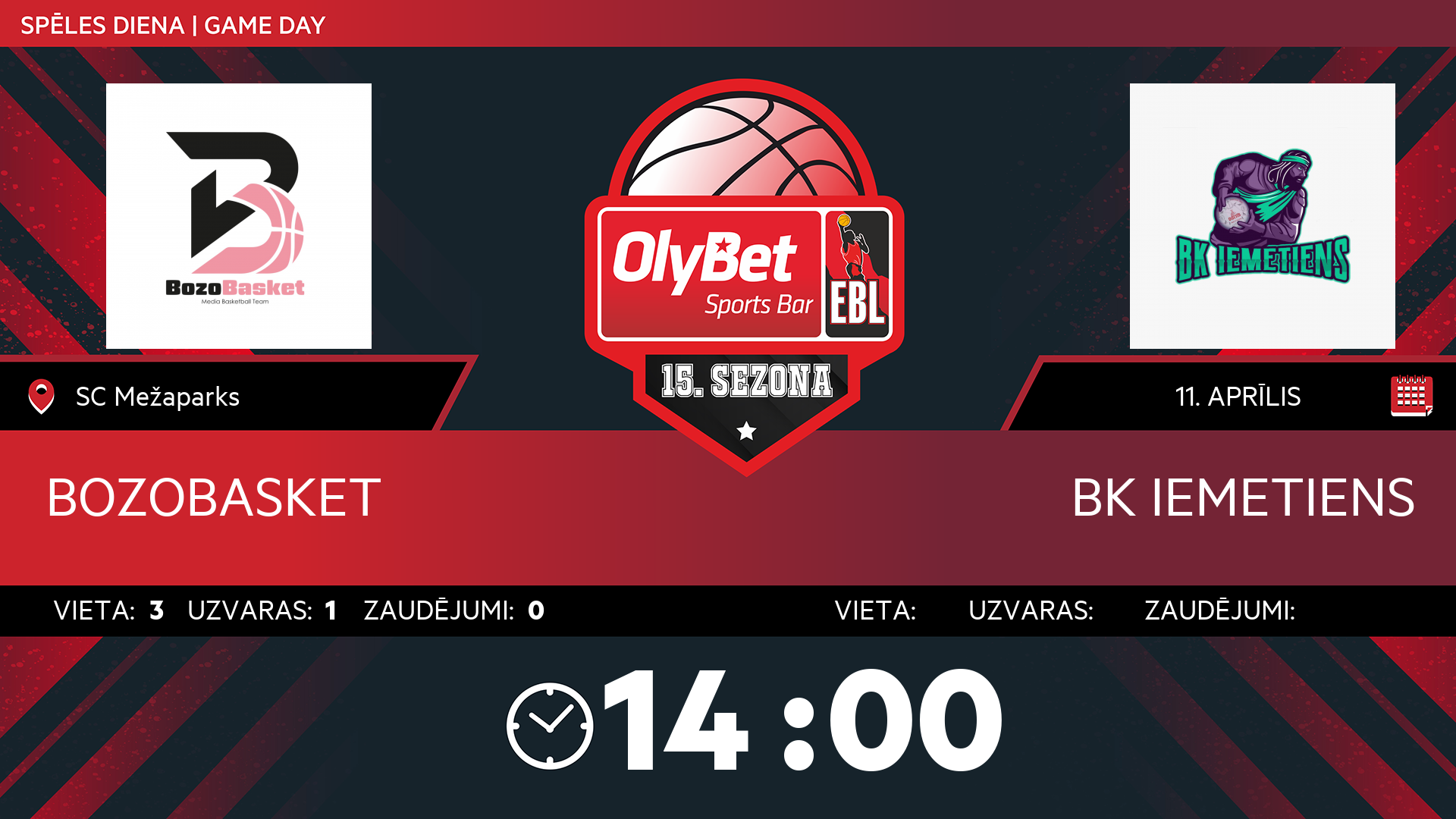 sestdiena: 14:00