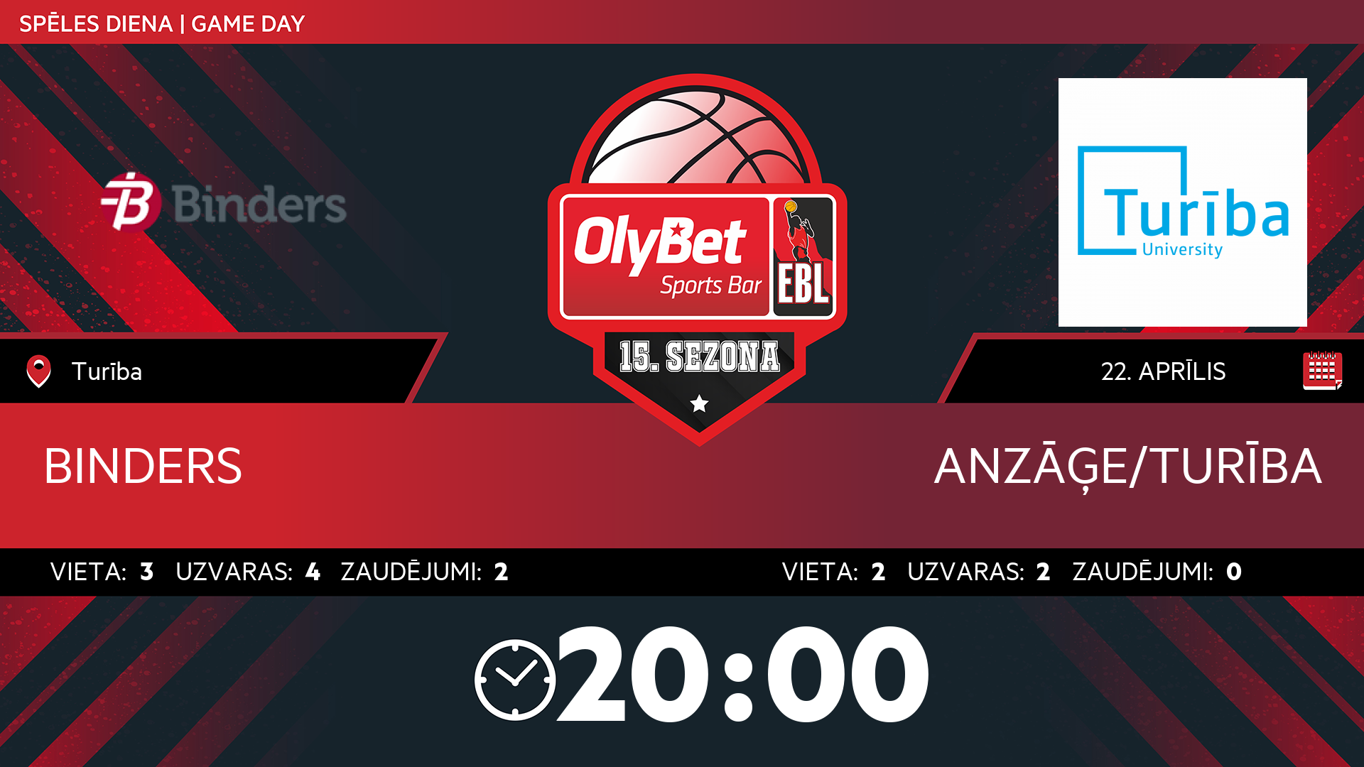 sestdiena: 20:00