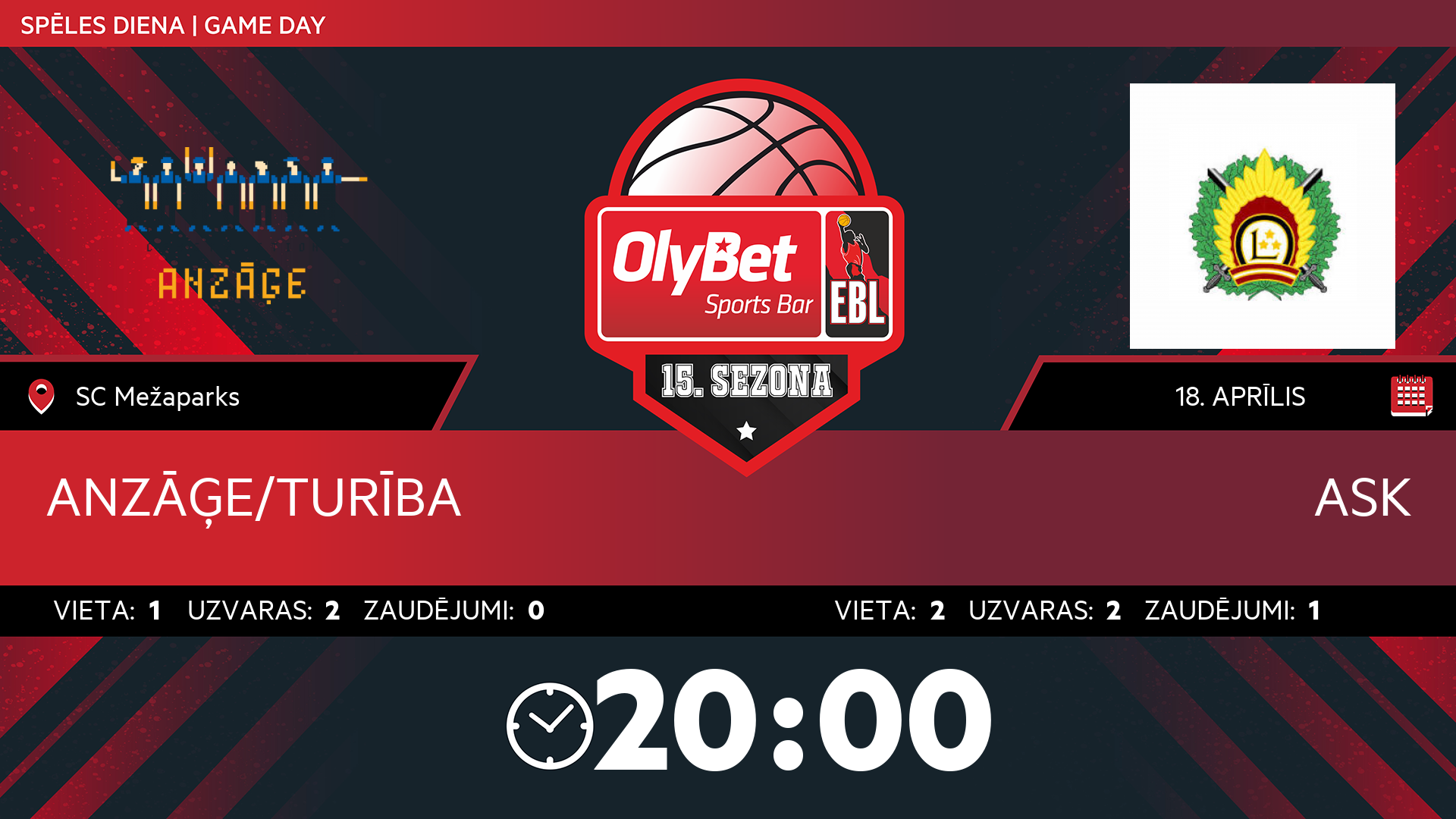 sestdiena: 20:00